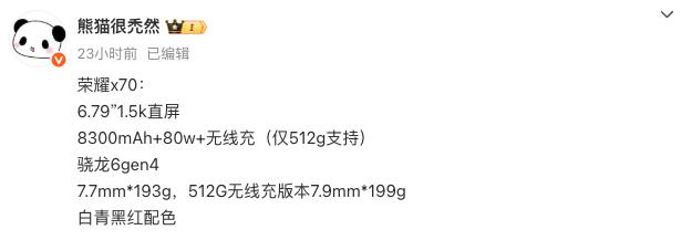 最后,从爆料信息看,荣耀X70系列很可能在7月中下旬发布。