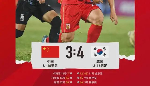 虽败犹荣!U16国少3-4惜败韩国,却点亮中国足球未来之光