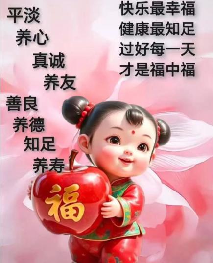 人生短暂,别再看重金钱、执着名利、计较得失,别为难自己。健康是福,平安是宝,这才是最宝贵的。一江春水向东流,记住快乐,丢掉烦恼。老来万事随它去,只把健康记心间。能唱能跳能旅游,能吃能睡才是真幸福。早安吉祥!