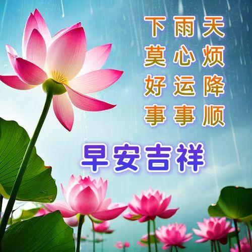 雨水哗哗,展现美景,淅淅沥沥带来好心情。雨花纷纷洒洒,飘来一沓沓吉祥。喜雨降临,带来和顺与甜蜜。雨丝绵绵滴滴答答,短信祝福送到你家。下雨啦,愿你心情乐开花!早安!