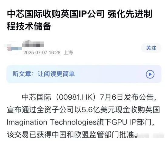 中芯国际收购英半导体IP公司传闻回应揭晓