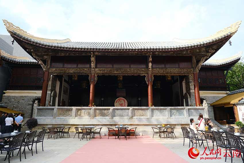 图为昭通古城核心区的陕西会馆内,如今戏台前已成为游人歇脚喝茶的惬意之地。人民网记者 蔡树菁摄