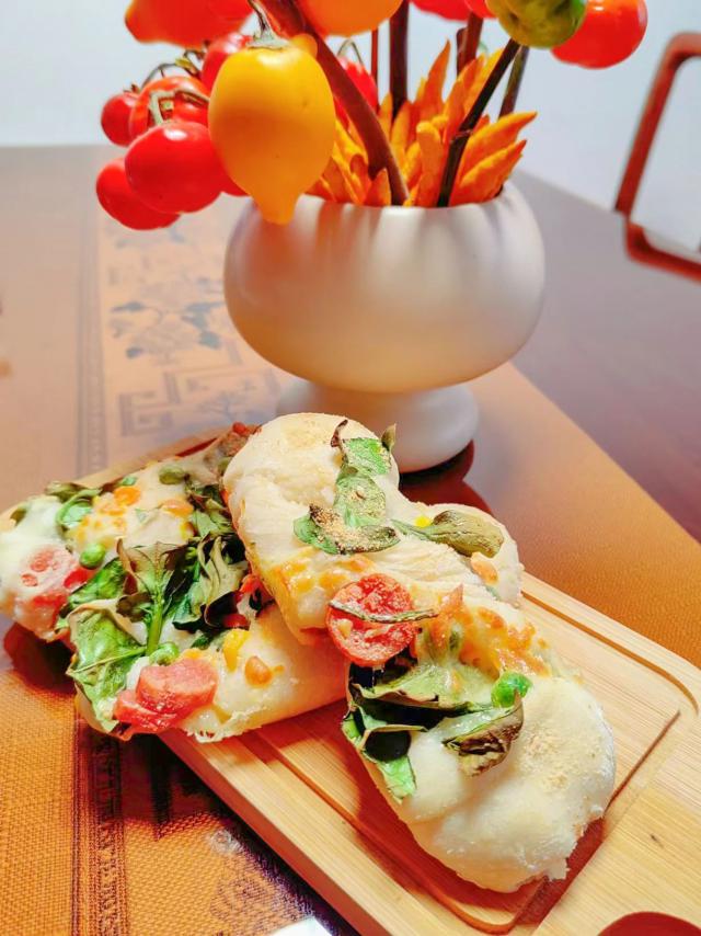 这道混着麦香、香肠咸香的恰巴塔面包大功告成啦!快来试试吧!