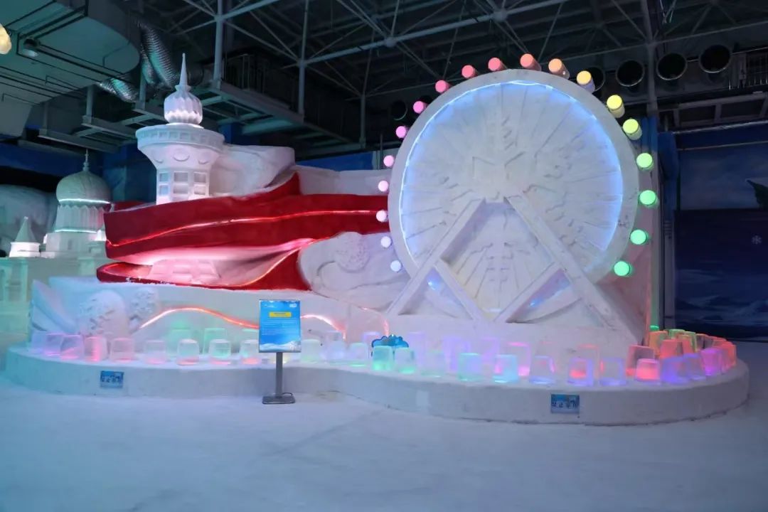 除此之外,馆内还特意设置了互动体验区,有冰面滑行、戏雪区以及飘雪效果等项目,让游客能够全方位地感受冰雪文化的独特魅力。在馆内的游览路线上,分布着形态各异的冰雕熊猫,它们将各个主题区域串联起来,为游览增添了不少趣味性。