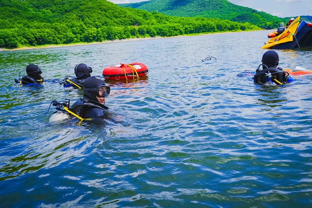 潜水员采用“定位圆形搜索技术”,以落水点为圆心进行360度螺旋探摸,配合水下打捞袋起浮沉车。