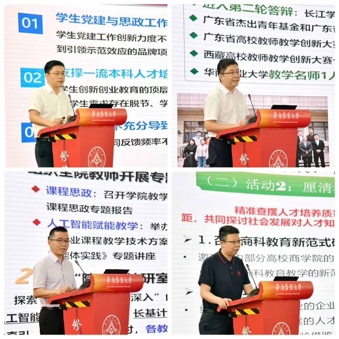 会上,华农党委学生工作部(党委研究生工作部),兽医学院,数学与信息学院、软件学院,经济管理学院围绕本科教育教学的做法、特色和成果等方面做了经验汇报。