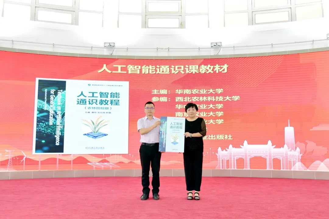 在揭牌仪式现场,华南农业大学AI赋能教育教学项目清单以及人工智能通识课教材正式发布。