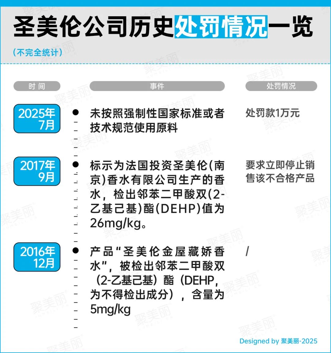 实际上,圣美伦此前已多次因质量问题被处罚。2016年及2017年,其产品相继被检出含有邻苯二甲酸双(2 - 乙基己基)酯(以下简称“DEHP”),因此被监管机构通报。
