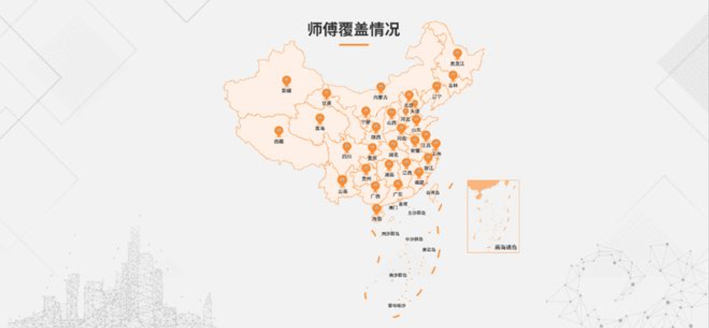 展会现场,面对“偏远乡镇订单无人接单,急单找不到师傅”的疑问,奇兵到家工作人员用数据解答:平台拥有300万+专业师傅,服务网络覆盖全国31个省、3000多个区县、40000多个乡镇街道,渗透率达99.5%。