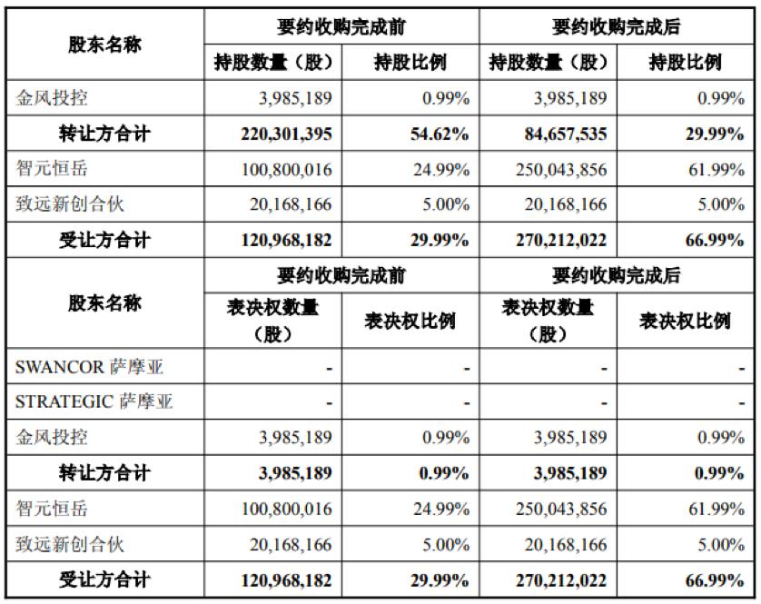 智元恒岳及关联方以邀约方式增持1.49亿股,占总股本37%。交易价格为人民币7.78元/股,最高收购价为11.6亿元。交易完成后,智元恒岳与致远创新合计持股达66.99%。