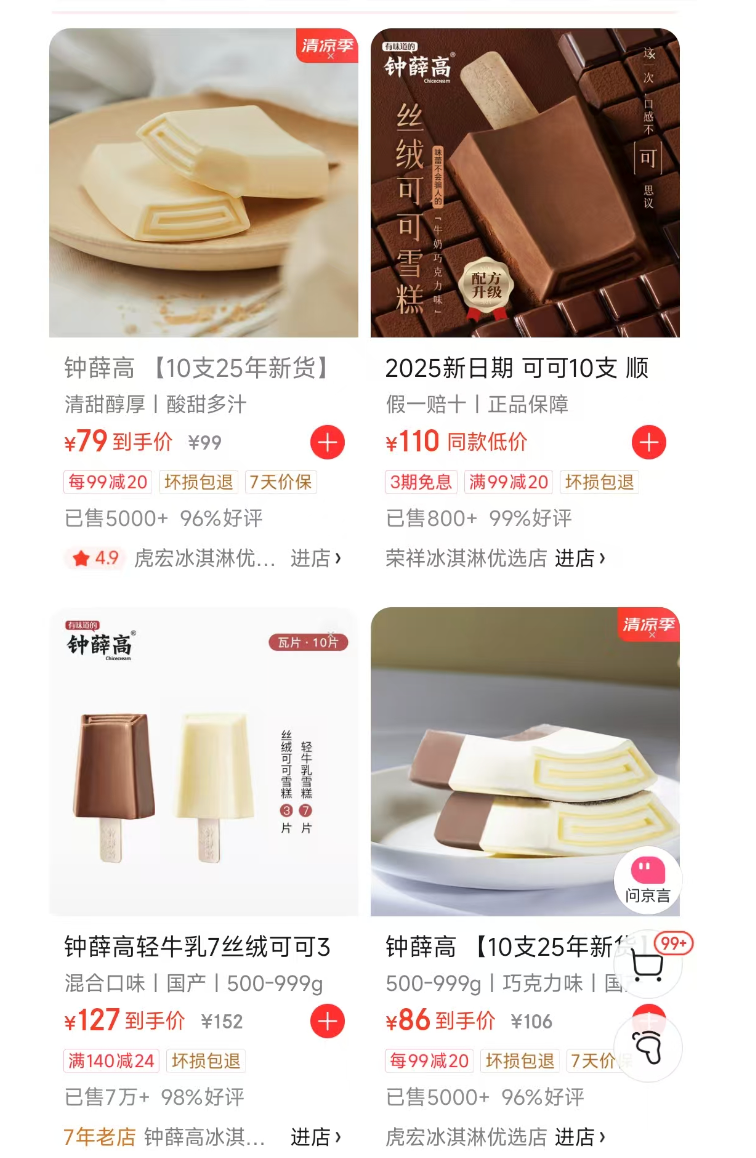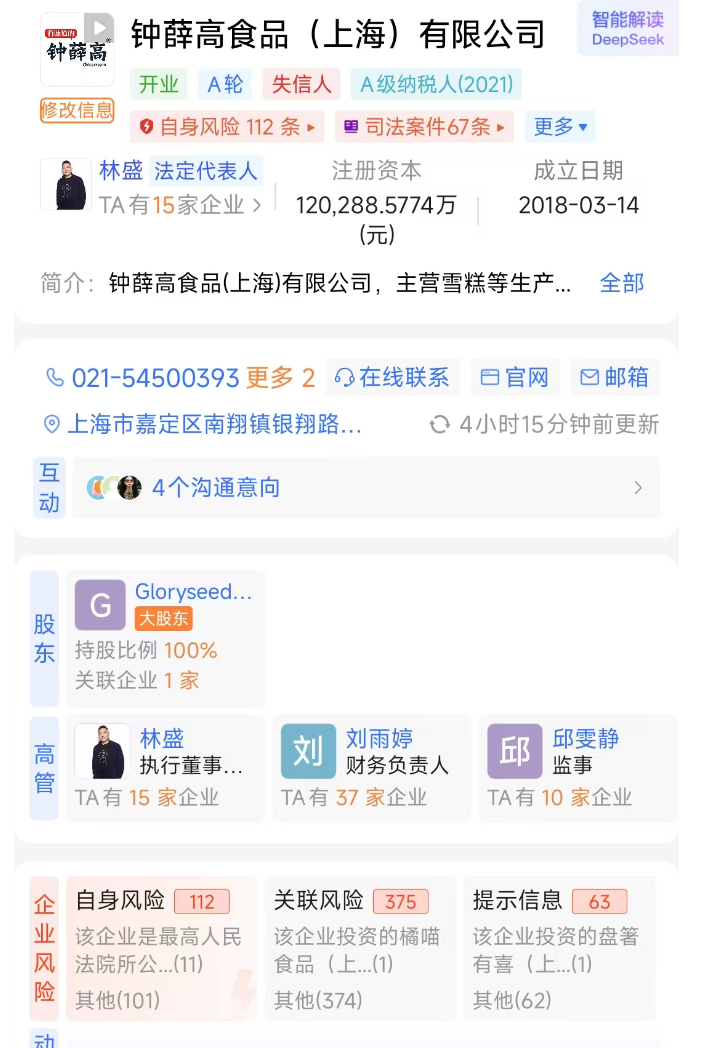 2025年,曾经风光无限、靠高价在市场上引起轰动的钟薛高走到了破产清算的地步。爱企查显示,钟薛高食品(上海)有限公司有112条自身风险,67条司法案件。钟薛高旗下的钟茂(上海)食品科技有限公司被债权人上海安得列郎晴食品贸易有限公司申请破产清算,原因是“无法偿还到期债务,而且明显没有偿还能力”。现在,钟薛高京东旗舰店还在营业,但店里的商品少了很多,只有几款单品在售,价格也比以前低了。