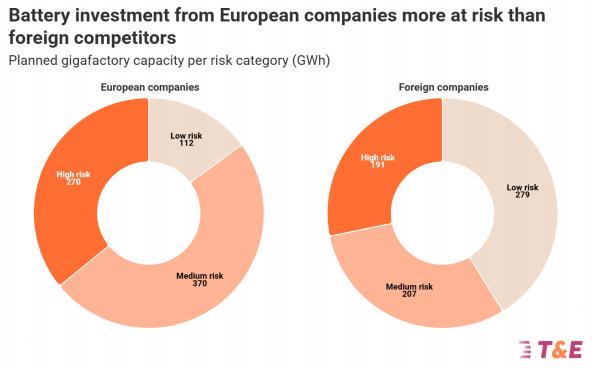 同样,T&E依据多项关键标准评估欧洲地区的电池工厂,数据显示: