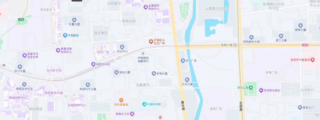 昆明商业核心区集中在东风路一带,这里有昆明恒隆广场、金骏广场、金格中心、金鹰国际购物中心、百盛购物中心、顺城购物中心、昆明百货大楼、南屏步行街等商业体。无论是本土运营商还是外来企业,都在此布局。昆明高端商业竞争从早期的金格百货,到如今的昆明恒隆广场,以及拿地六年仍无动静的昆明SKP,主要集中在这一区域。