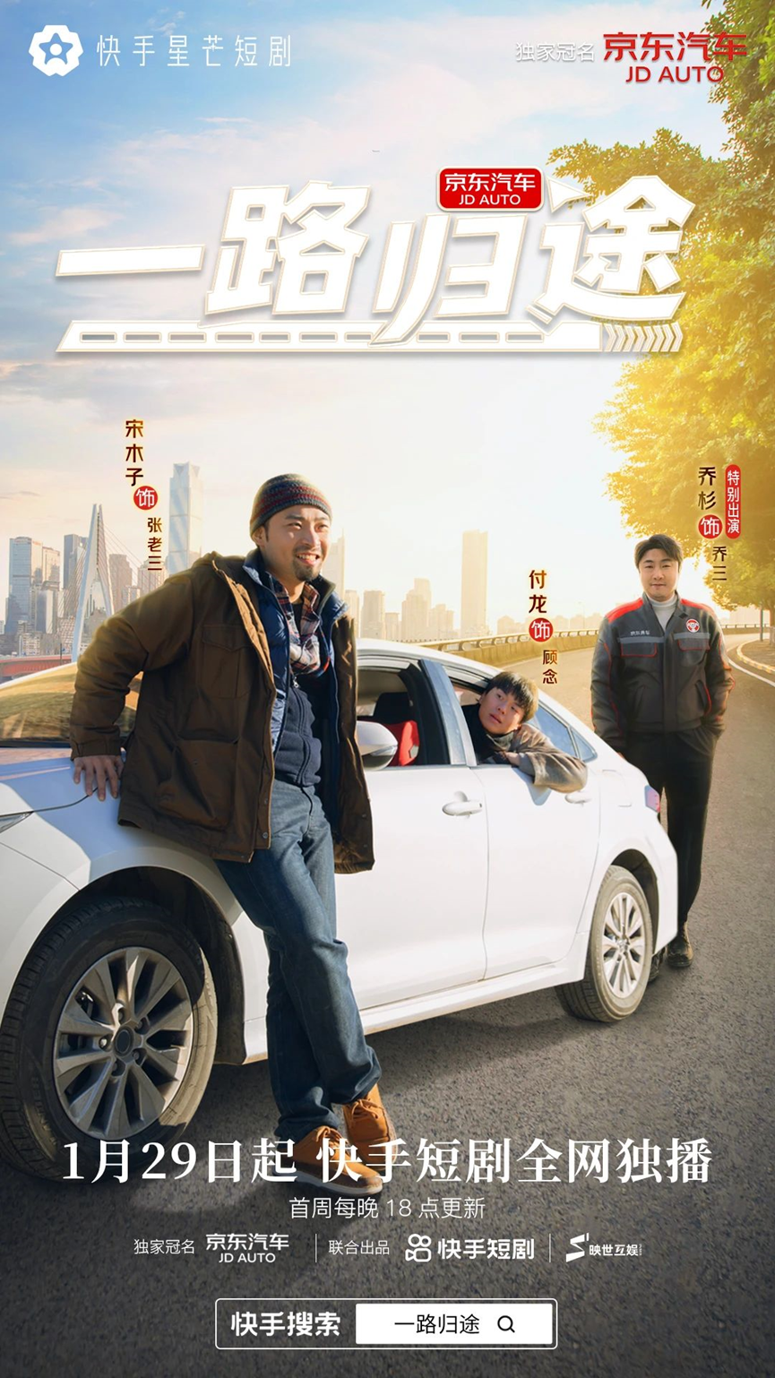 前两年,京东汽车与快手星芒短剧合作推出《一路归途》。这是暖心公路喜剧,聚焦春节,讲小人物归乡故事,通过汽车保养等情节植入京东汽车品牌,再通过快手资源引流至京东主会场。