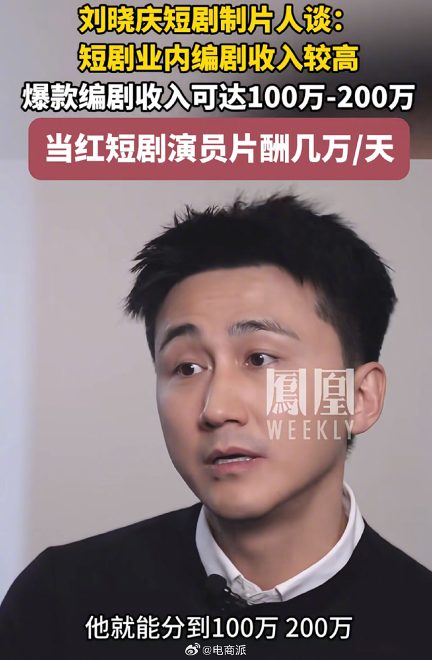 同时,短剧从业者收入高,爆款编剧收入100万 - 200万,当红演员日薪几万。