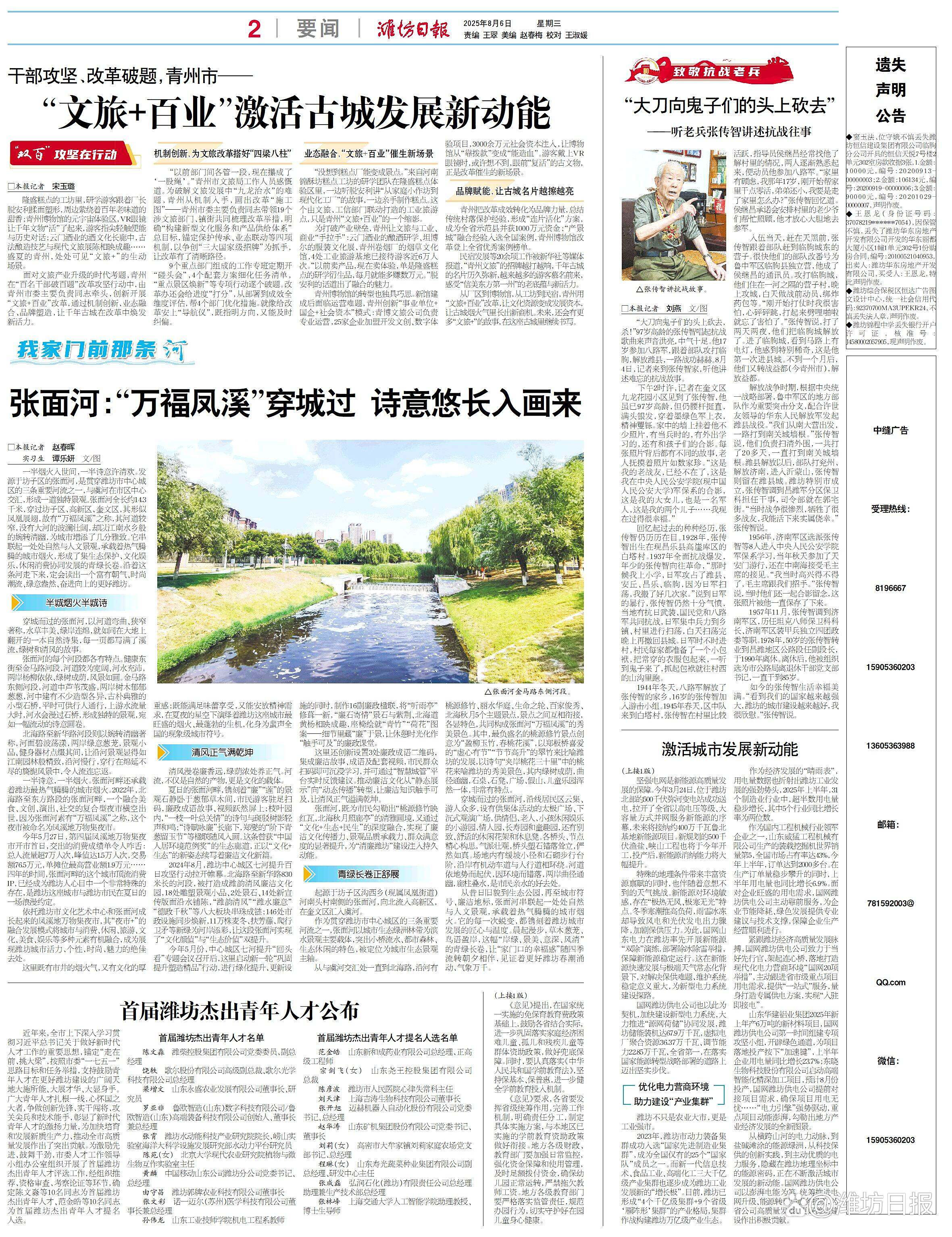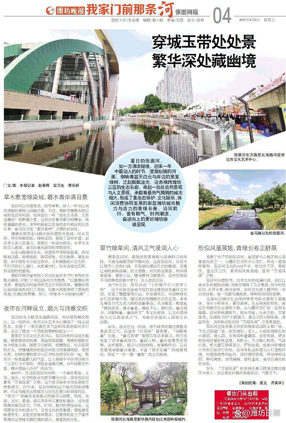 编者按 水是生存与文明之源。潍坊水系丰富,每条河都蕴含着城市的历史与人文情怀。今年是“绿水青山就是金山银山”理念提出20周年,也是“双碳”目标提出5周年。为唤起市民对河流生态保护的关注,展现潍坊“水城共生”魅力,打造宜居宜游环境,潍坊市融媒体中心开设“我家门前那条河”栏目,以全域河流为纽带,记录变迁、讲述故事,挖掘生态、文化、乡愁价值,展现生态改善带来的获得感与幸福感。