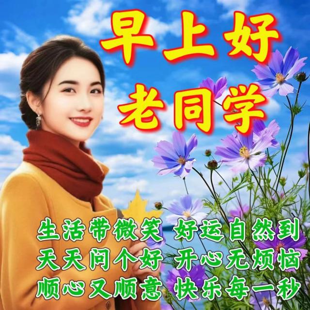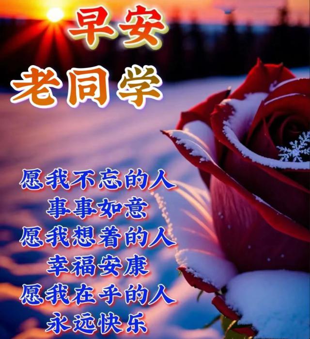早上起来先问个好,我送大家几个“好”。距离远也好,近也好,常联系就好。忙碌也好,清闲也好,有牵挂就好。贫穷也好,富有也好,健康就好。年纪大也好,小也好,平安就好。名声也好,利益也好,快乐就好。愿大家健康快乐每一天,再送大家一个好!老同学,早安!