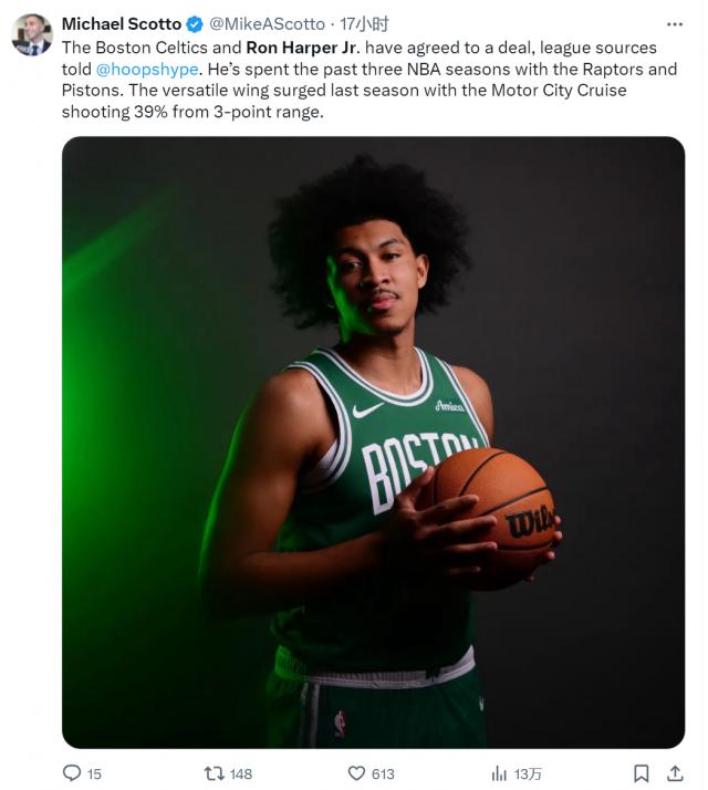 近日,凯尔特人宣布与小罗恩 - 哈珀签下一份Exhibit10合同。这里解释一下,Exhibit10合同是NBA训练营合同的一种,球员有机会在赛季中先转为双向合同,之后还有机会转为正式合同。对于罗恩 - 哈珀这个名字,相信不少老球迷或者喜欢玩2K游戏的朋友会比较熟悉。