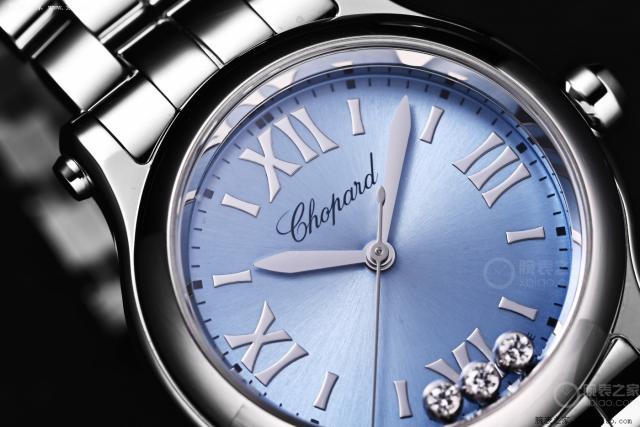 [ 腕表之家 ] [ 腕表之家 腕表品鉴 ] 蓝色表盘属于清爽色系,在近两年一直是热门彩色表款的选择。它既能驾驭夏日的热烈氛围,又能融入春秋的温婉格调,即便在冬日,也能凭借那一抹明快之色成为搭配亮点,真正做到了适配一年四季。如今夏天虽已渐渐降温,但对于颜值高的腕表而言,温度并不会限制其魅力。就像萧邦Happy Sport系列,作为品牌热门女表,早已用实力证明自己是永远不会出错的选择。今天,我们就来详细聊聊这枚自带高光的腕表。