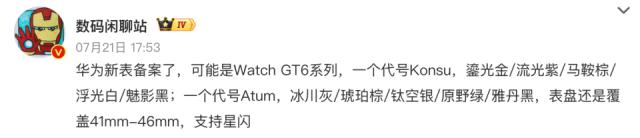 WATCH GT6 系列智能手表。