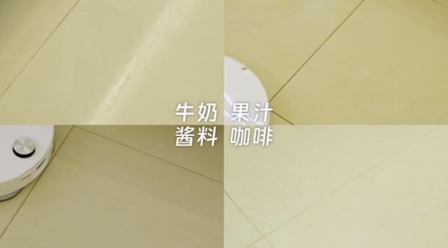先说“拖”。日常的地面清洁,石头P20 Ultra Plus完成得相当出色。要是我故意捣乱,在地上撒上牛奶、果汁、酱料和咖啡,并且放置一段时间,它又会如何应对呢?