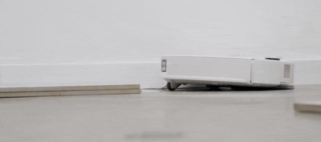 遇到门槛时,它有行业首创的“底盘升降2.0”功能。遇到较高的门槛,它能自动识别并将底盘升高2cm,一升一冲,完成跨越。