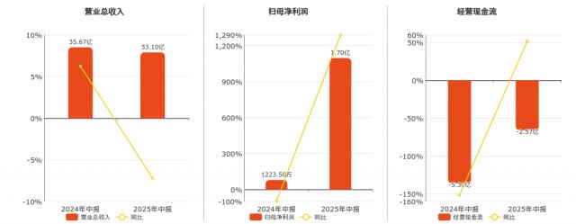公司营业总收入为33.10亿元,较去年同报告期减少2.57亿元,同比下降7.21%。归母净利润为1.70亿元,经营活动现金净流入为 -2.57亿元。