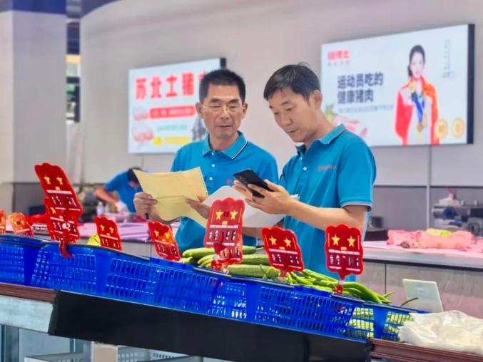 走进一楼的富林市集,干净整洁的环境令人眼前一亮。30多个摊位上,各类新鲜食材分区整齐摆放,包括鲜肉、生蔬、豆制品以及各色海鲜水产等居民日常餐桌上常见的家常菜食材。熟食卤味店也已开门营业,香气弥漫。市集设有平价菜专柜,50多个品种的菜品均由泖港集采集配中心配送,既能保证质量又能保鲜。同时,每个摊位每天还会推出三至五款特价菜品,价格低于市场价,为顾客提供了更多高性价比的选择。一位家住隔壁小区的顾客听说菜场开业,一大早就特意赶来采购,他表示:“挺好的,很便宜,这个3块8算是很实惠了,真的不错。”