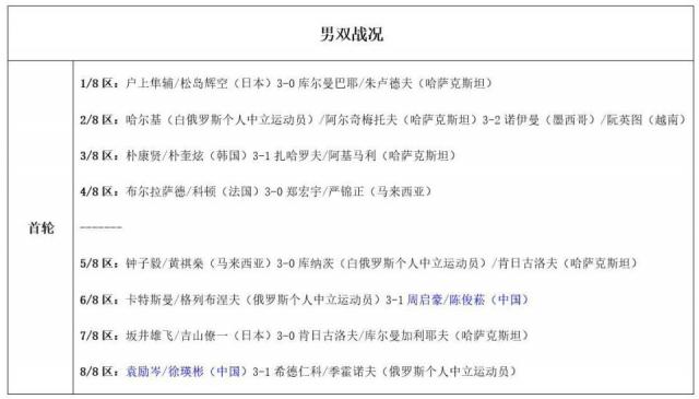 15:45,黄友政VS布尔拉萨德(法国)、陈俊菘VS库尔曼加利耶夫(哈萨克斯坦);