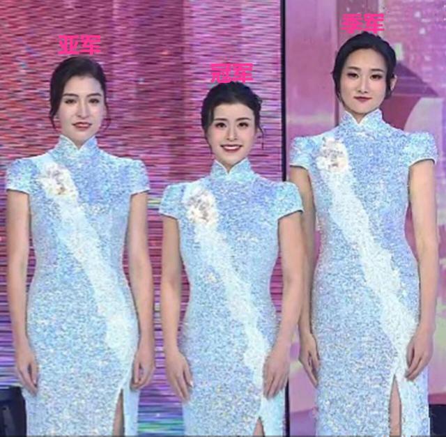 下图从左至右分别是亚军施宇琪(身高166cm)、冠军陈咏诗(身高160cm)、季军袁文静(身高174cm)。