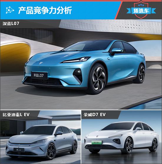此次与2026款深蓝L07(下文简称深蓝L07)对比的车型分别为2025款比亚迪秦L EV(下文简称比亚迪秦L EV)和2025款上汽荣威D7 EV(下文简称荣威D7 EV)。三款车型中,深蓝L07的轴距最长,车身宽度也领先。而荣威D7 EV在车身长度和高度方面占优。