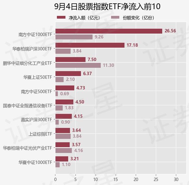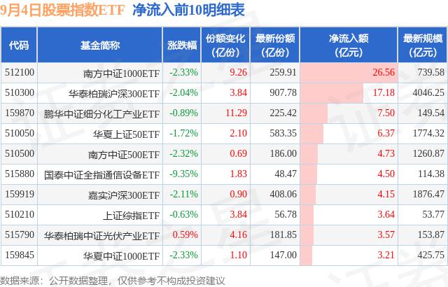 当日有195只股票指数ETF基金出现资金净流入,其中南方中证1000ETF(512100)净流入排首位,份额增加了9.26亿份,净流入额为26.56亿元。