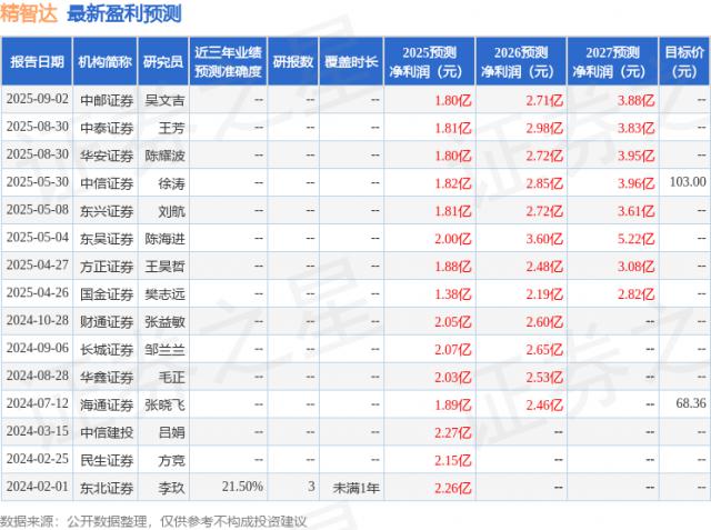 证券之星数据中心根据近三年发布的研报数据计算,东北证券李玖研究员团队对该股研究较为深入,近三年预测准确度均值为21.5%,其预测2025年度归属净利润为盈利2.26亿,根据现价换算的预测市盈率为43.62。