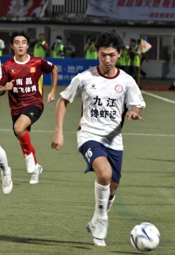 守门员来晓宇身高1.92米,是队中最高的球员,守门能力出众。比赛中,他高扑低挡,力保球门不失,是九江队在赣超保持不败的关键人物之一。