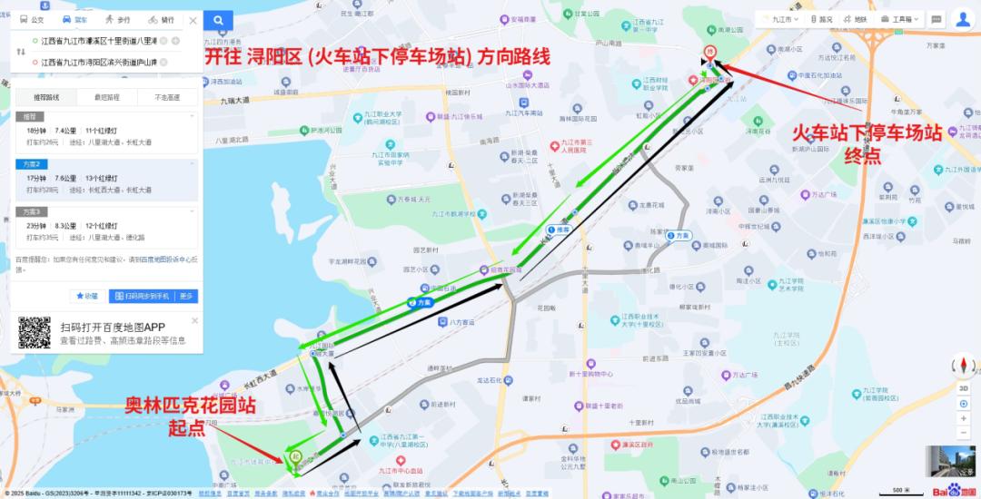 车辆停放位置:赛前在柴桑区(政务服务中心站),赛后在市政府西附楼的(祥和路东侧·九龙新城A区)公交站台。