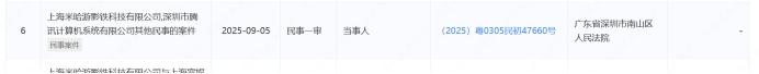 米哈游又抓泄密内鬼啦!近期,上海米哈游影铁科技有限公司与深圳市腾讯计算机系统有限公司新增了一起“其他民事”类型的诉讼案件,案号为(2025)粤 0305 民初 47660 号,定于 9 月 5 日在广东省深圳市南山区人民法院第 1018 审判庭开庭审理。