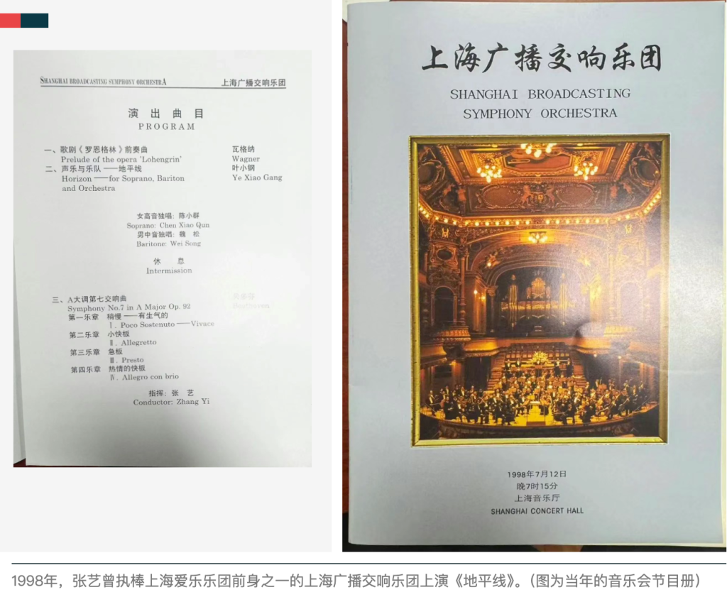 1998年,张艺曾执棒上海爱乐前身演绎叶小纲《地平线》