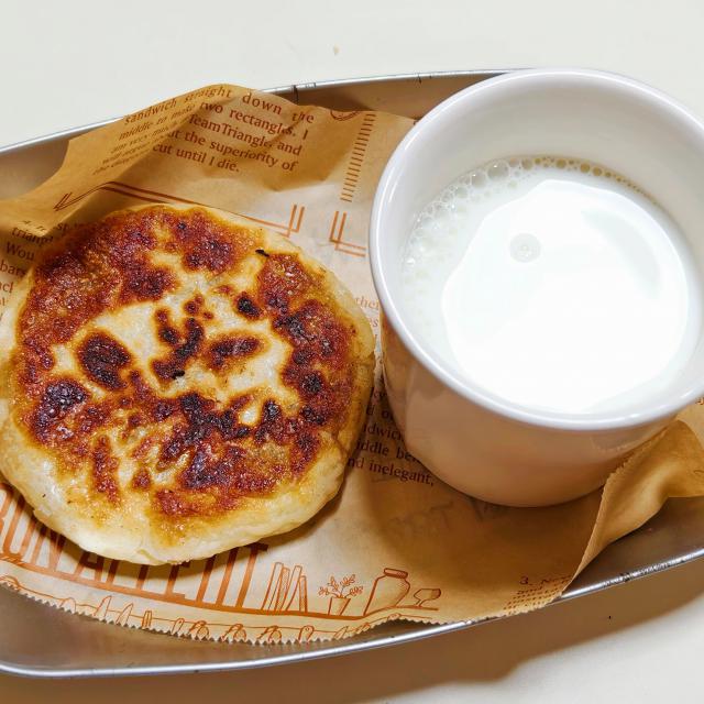 煎卷的有手抓饼、香肠、墨西哥卷饼、馅饼等,多备点,早餐口味能变花样,省事又好吃。我实名安利酥皮牛肉馅饼,用空气炸锅做省事省油,用煎锅也不麻烦,两面各煎 4 分钟,搭配热牛奶,能把小 D 从睡意中唤醒。