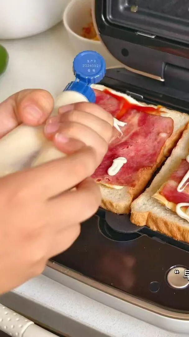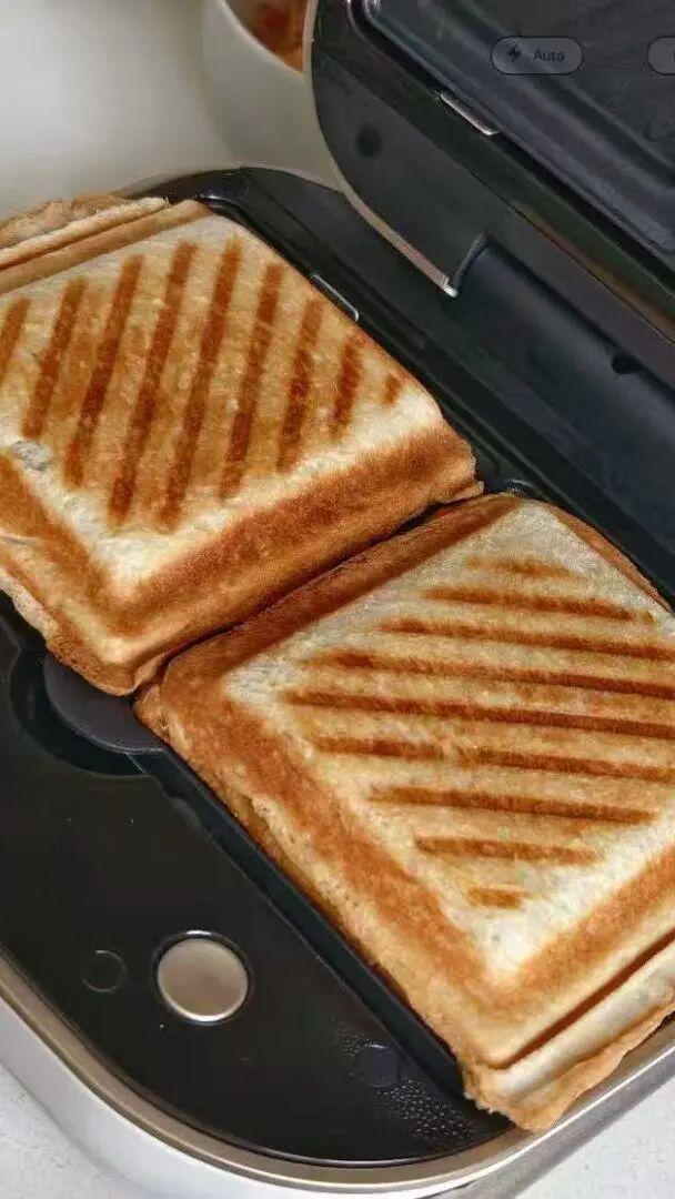 ② 三明治早餐机:早上起晚了,煎个蛋或培根,放 2 片面包、芝士,定个时,几分钟香香脆脆、还拉丝的三明治就出炉了,小朋友也能自己动手做。