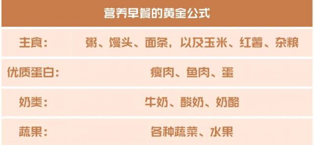 给大家划个重点,早餐的黄金公式 = 主食 + 优质蛋白 + 奶类 + 蔬果。满足 3 类及以上就是不错的营养早餐。
