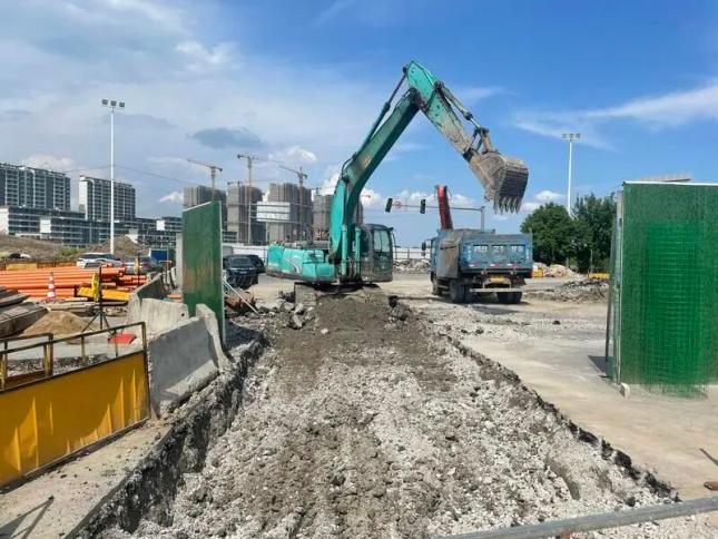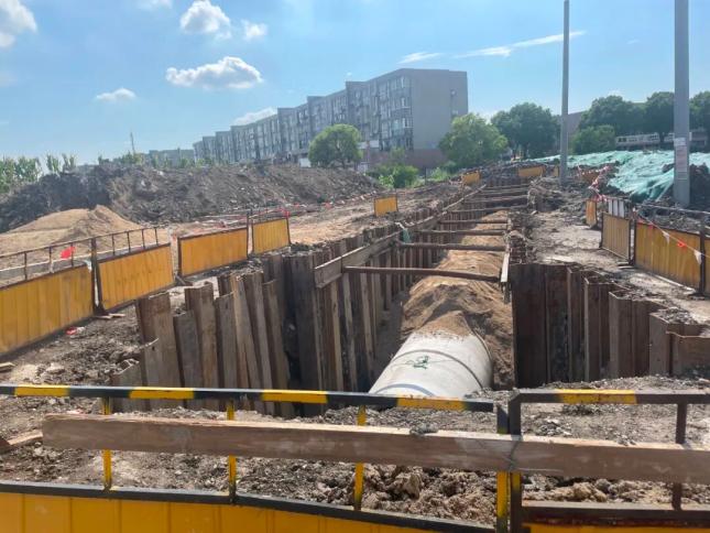9月3日,林顺路(林腾路 - 亭虹路)道路新建工程施工现场一片繁忙,工作人员正紧张有序地进行雨污水管施工作业。