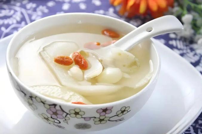 杏仁银耳汤:取15克杏仁,1朵银耳,10克百合,10克莲子,适量的冰糖。将银耳泡发后,与杏仁、百合、莲子一起炖煮至软烂,加入冰糖调味。此膳食清润滋补,能够润燥生津,适合秋季养生食用。