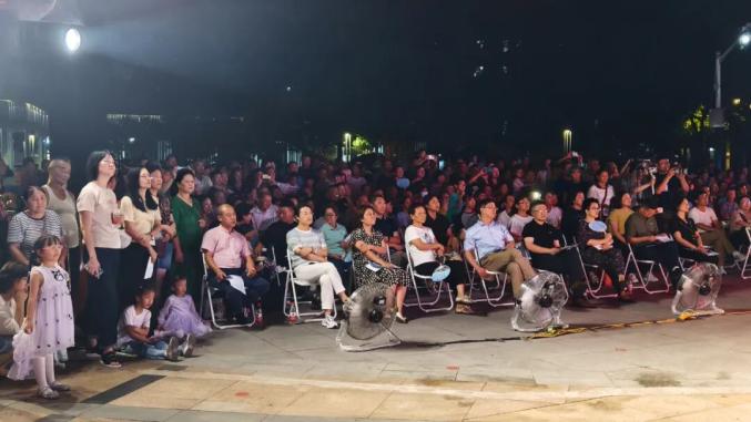 人乐小区居民唐女士抱着小狗和家人一起来休闲,她开心地对记者说:“在这样炎热的夏夜,举办户外文艺晚会,既丰富了老百姓的生活,又带来了精神享受,感觉特别好!”自1995年起,这场由社区群众参与表演、文艺工作者倾情献艺的广场文艺晚会,每年夏日如期举行,已成为岳阳街道群众喜爱的一张文化名片。