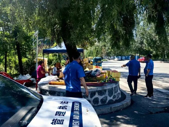 ●市城管执法局在近日对城区违规占道经营以及临时售卖摊点开展了全面的巡查劝离工作。