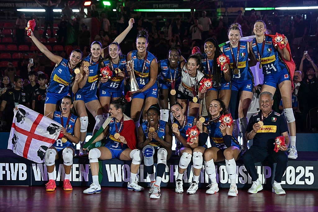 2023年11月,前意大利男排主帅贝拉斯科接手意大利女排,率队连夺2024年世界女排联赛冠军、2024年巴黎奥运会冠军、2025年世界女排联赛冠军和2025年世锦赛冠军,达成“三大赛”大满贯,球队在国际排联赛事中36连胜。