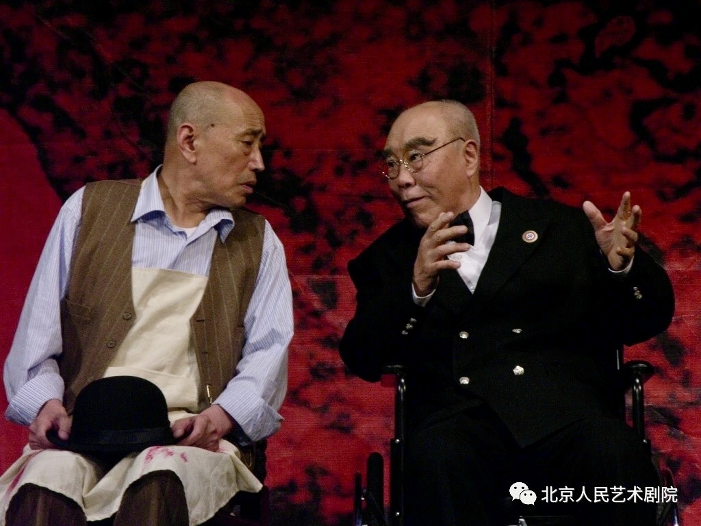 2005版《屠夫》剧照,时年75岁的朱旭再演伯克勒,时年81岁的郑榕由于身体不便全程坐在轮椅上诠释盖世太保冯·拉姆 图片出自北京人艺官网