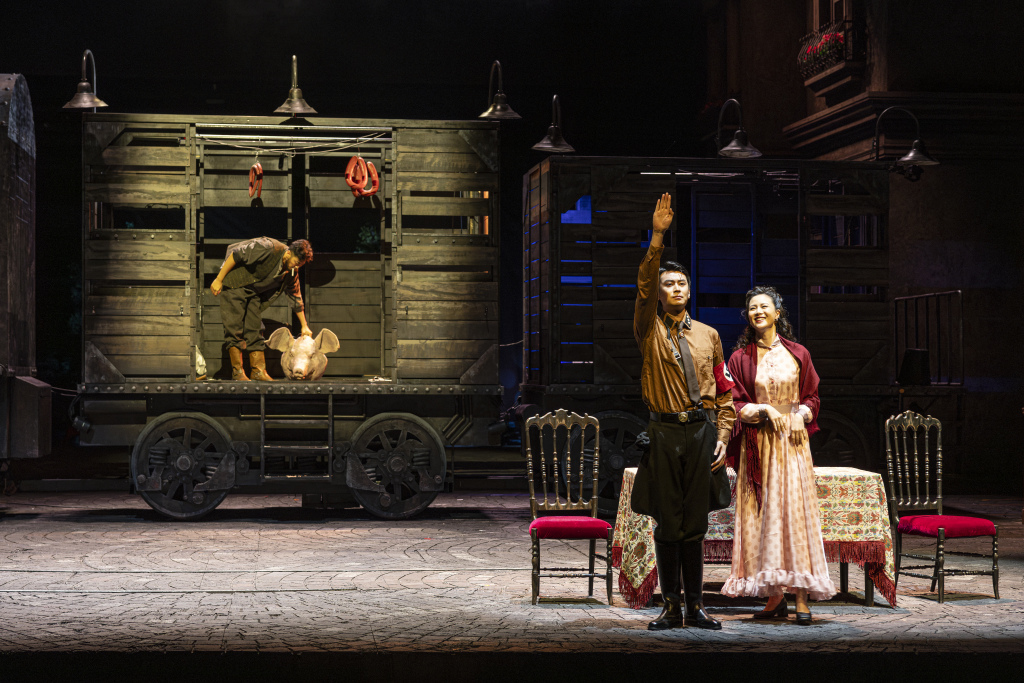 急促汽笛声划破维也纳夜空,一列带着锅炉火光、冒着袅袅白烟的蒸汽机车从舞台深处缓缓驶出,“音乐之都”的宁静瞬间被打破,一场笼罩在二战阴云下的悲惨故事就此开场……9月6日晚,北京人艺新排反战剧目《屠夫》在北京国际戏剧中心·曹禺剧场首演。