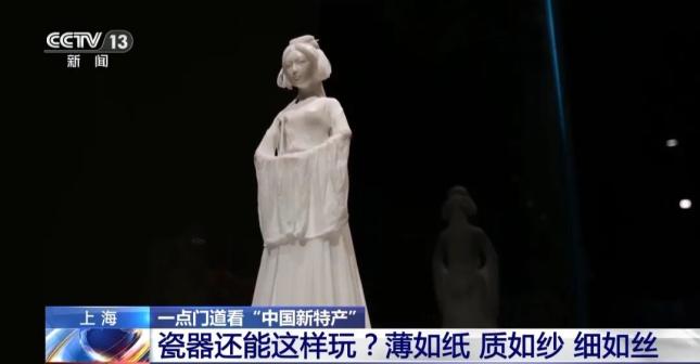 《神话》运用高韧薄胎瓷衣技艺,瓷衣远看像纱,近看是瓷,最薄处仅0.2毫米,发丝清晰可见。这件作品历时半年,经历上百次烧制失败才最终制成。