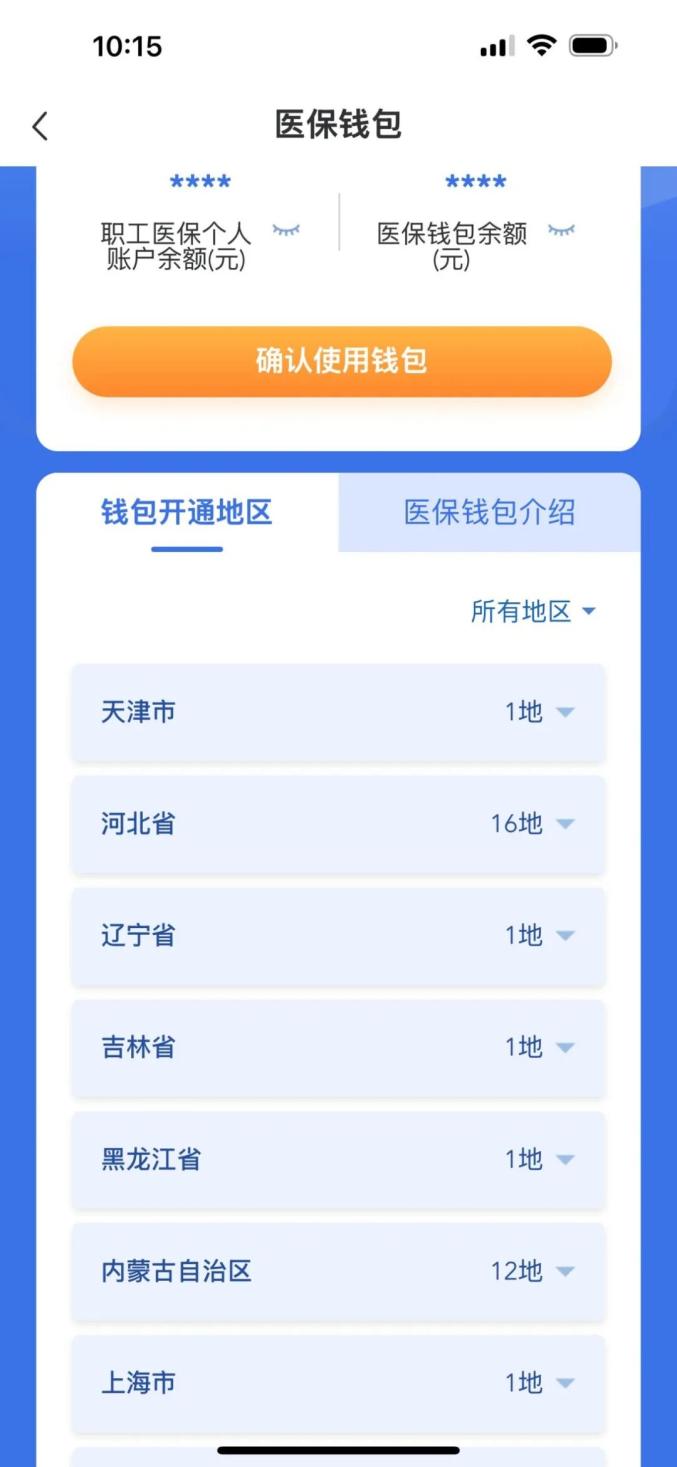 (2)打开“医保钱包”,查询您和亲人所在的城市是否开通该功能。使用“医保钱包”转账,需转账人和收款人的地区均开通“医保钱包”功能。