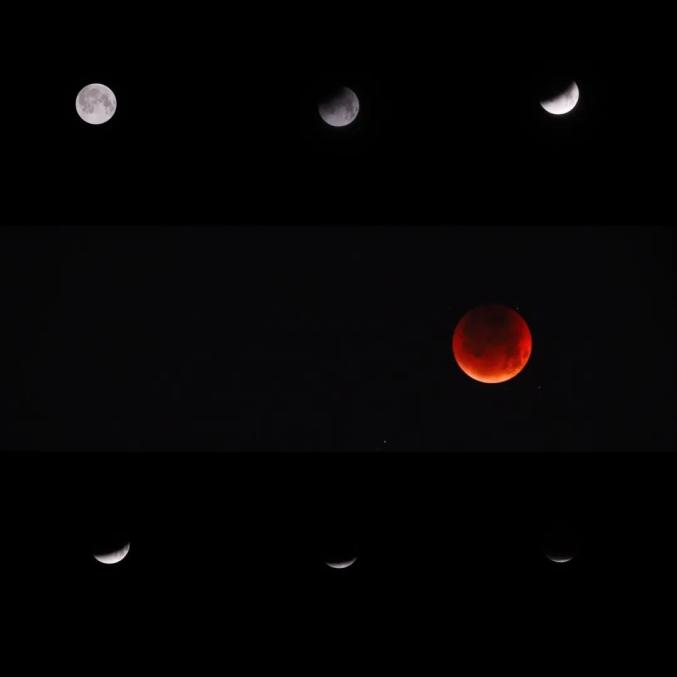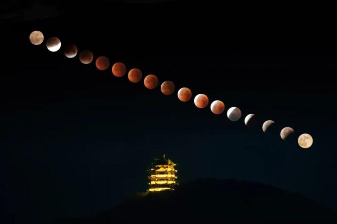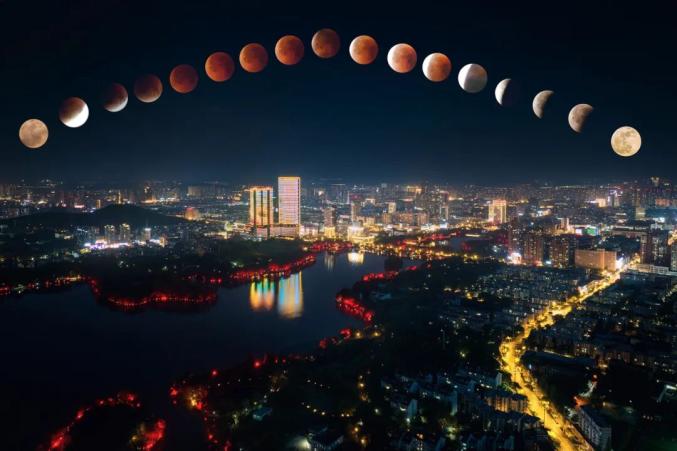 昨夜至今日(8日)凌晨,天宇呈现出一场壮观的月全食景象。